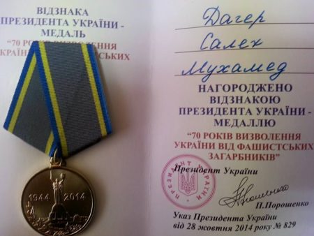 في إطار الاحتفالات بالذكرى السبعين للنصر على النازية وتحرير الأراضي الأوكرانية، أصدر الرئيس الأوكراني بيترو بوروشينكو المرسوم الرئاسي رقم 829 بتاريخ 28 تشرين الثاني/نوفمبر 2014، الذي ينص على تكريم الشخصيات التي قدّمت خدمات بارزة للوطن الأوكراني.