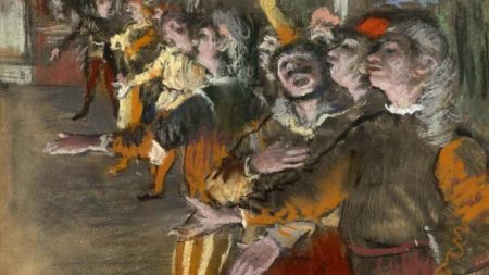 وتصور اللوحة التي تحمل تسمية “الجوقة” وتعود إلى عام 1877 صفا من الرجال، وهم يغنون في أوبرا “دون جوان”.