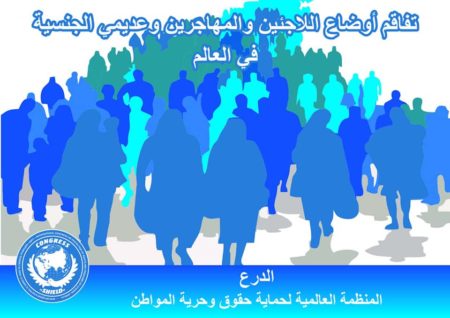 وتطبيق القرارات الدولية المتعلقة بحماية حقوق اللاجئين والمهاجريين وعديمي الجنسية في العالم