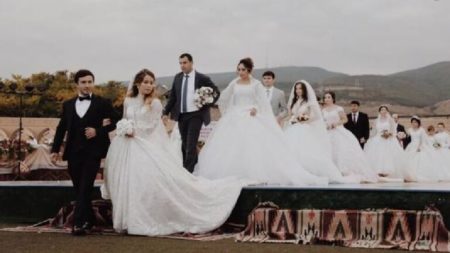 جرت في مدينة دربند بجمهورية داغستان في روسيا مراسم حفل زفاف جماعي شمل 30 عريسا وعروسة، بحضور أكثر من 10 آلاف شخص، ودخل في سجل “غينيس” للأرقام القياسية.