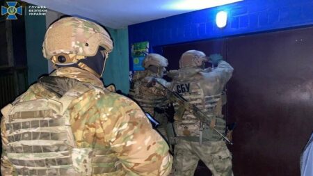 وأضاف: “خلال عملية التفتيش، عثر لدى زعيم المجموعة على مواد متطرفة باللغتين الروسية والأوكرانية، بالإضافة إلى رموز النازية الجديدة”.
