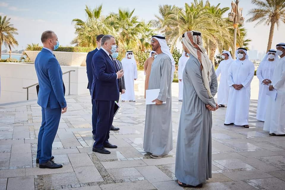 بالصور الرئيس الاوكراني فلاديمير زيلينسكي و حاكم ابو ظبي الشيخ خليفة بن زايد آل نهيان