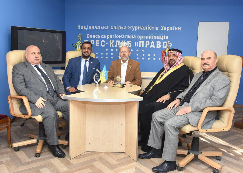 قام وفد الأتحاد العربي للأستثمار والتطوير العقاري التابع لمجلس الوحدة الاقتصادية العربية في جامعة الدول العربية المؤلف من معالي الشيخ احمد سالم أل سويدين والدكتور بشار سمحه نائب الرئيس والدكتور ايمن النجار مساعد رئيس الاتحاد في العلاقات الاستراتيجية والدكتور صالح ظاهر رئيس منظمة الدرع العالمية ومستشار الاتحاد العربي للاستثمار والتطوير العقاري في أوكرانيا بزيارة ودية إلى نقابة الصحفيين الاوكرانية في مدينة اوديسا حيث كان في استقبالهم السيد يوري انطولفتش ربوتن وعدد من أعضاء منظمة الدرع العالمية