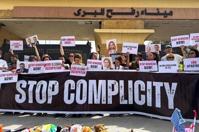 “من روما إلى رفح، نحن هنا لنقول: أوقفوا الحرب.. أوقفوا الإبادة.. افتحوا المعبر”، بهذه الكلمات عبّر أحد منظمي الوقفة عن موقف القافلة، التي رفعت لافتات كُتبت عليها عبارات مثل: “الحرية لفلسطين”، و”الكرامة حق لكل إنسان”، و”المساعدات ليست سلاحاً بل حياة”.