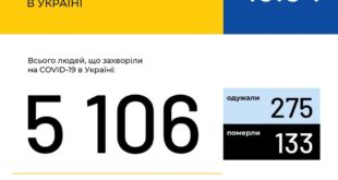 حصيلة الاصابات في فيروس كورونا في أوكرانيا ترتفع الى 5106 حالة وفقا لبيان وزارة الصحة الاوكرانية هذا اليوم 18-4-2020