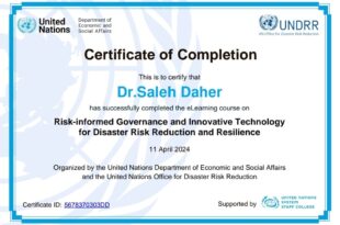 شارك الدكتور صالح ظاهر في إنجاز البرامج وورش العمل التعليمية بنجاح والتي تنظمها إدارة الشؤون الاقتصادية والاجتماعية بالأمم المتحدة الحوكمة الواعية بالمخاطر والتكنولوجيا المبتكرة للحد من مخاطر الكوارث والقدرة على مواجهتها تنظمه إدارة الشؤون الاقتصادية والاجتماعية بالأمم المتحدة ومكتب الأمم المتحدة للحد من مخاطر الكوارث تم تصميم هذه البرامج وورش …