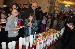 Ни один ребенок не ушел с пустыми руками получив в подарок символ Нового Года – игрушку и сладости, грузинской, молдавской, вьетнамской, китайской и сирийской кухни, угощали блюдами и сладостями. Детишки радовались, улыбались, веселились и получили множество положительных эмоций и впечатлений.