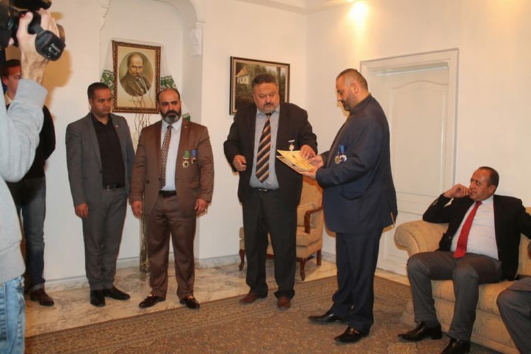 Международный конгресс по защите прав и свобод гражданин «Щит» присвоил почетное звание «Посла мира» гражданину Хазиму Омару Абед Альфаттах Алдвейку, за видающийся вклад в правозащитную деятельность и межнародную интеграцию, плодотворное сотрудничество, професионализм и большой вклад в правовую систему. А также за выдающиеся гуманитарные усилия, направленные на поддержку мира во всем мире на местном и международном уровнях. Награждение прошло в здании посольства Украины в Хашимитском королевстве Иордании города Амман. На вручении присутсвовали: Чрезвычайный Полномочный Посол Украины в Хашимитском Королевстве Иордания — Пасько Сергей Алексеевич, вице – президент Международного конгресса по защите прав и свобод граждан «Щит» — Матякин Александр Георгиевич, представителя Международного конгресса «Щит» на Ближнем Востоке и Северной Африки Саттам Хаким Альфаиз, послы мира, зарубежные и иорданские деятели, а так же украинские общины находящееся в городе Аммане.