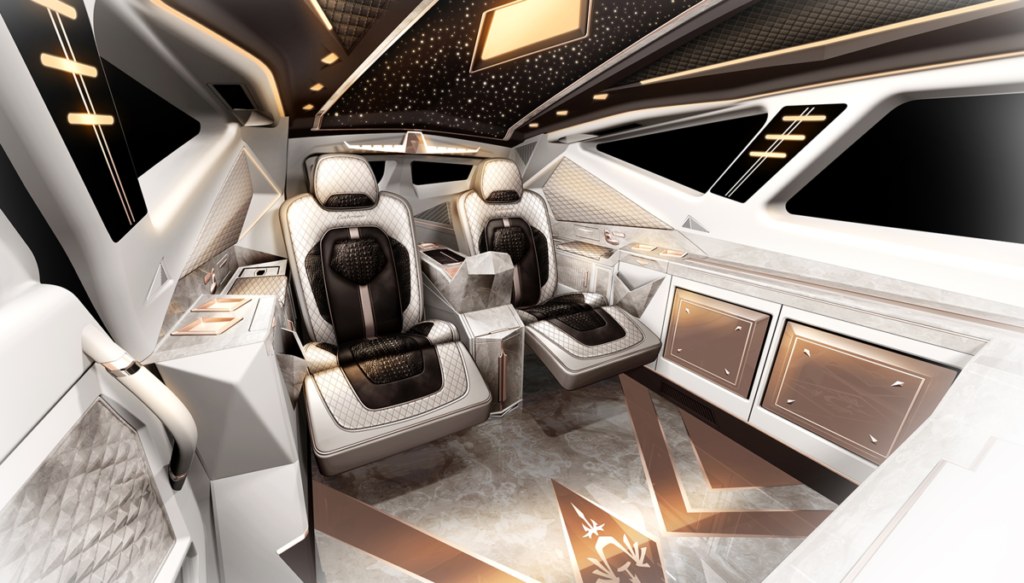 Китайский автомобиль в плане роскоши не уступает Bentley или Rolls-Royce. В салоне, задняя часть которого может быть как двух, так и четырехместной, есть огромные кресла, столики с электроприводом, кофемашина, холодильник, 4K UHD телевизор и игровая приставка Sony PS4.