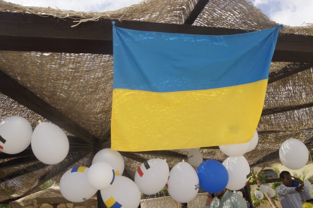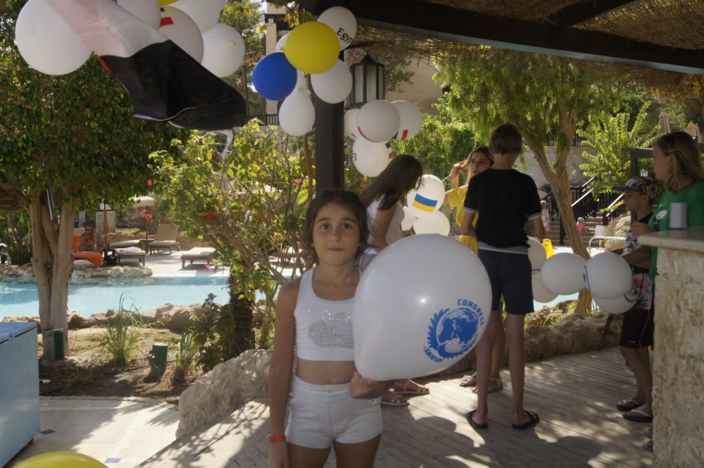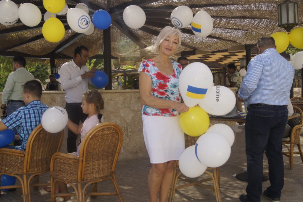 К встречи с представителями дипломатического корпуса дети подготовились разукрасив один из павильонов отеля в котором проживают флажками и шариками символики Украины, Египта, Международного конгресса «Щит» и ТОВ «Світ освіти».