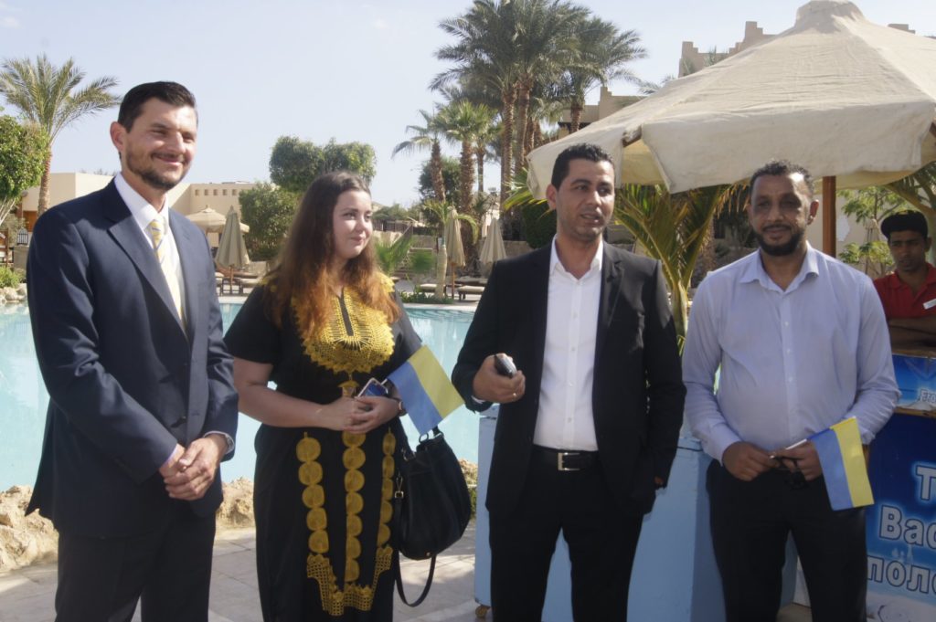 Консул Украины в Египте поздравил детей переселенцев из временно оккупированных территорий Украины с отдыхом в Египетской стране, выразил надежду что дети станут достойными гражданами Украины, пожелал Дальнейшего продуктивного отдыха. Большую благодарность выразил организаторам поездки, а так же надежду на дальнейшее сотрудничество с Международной Организацией «ЩИТ» и ТОВ «Світ Освіти».