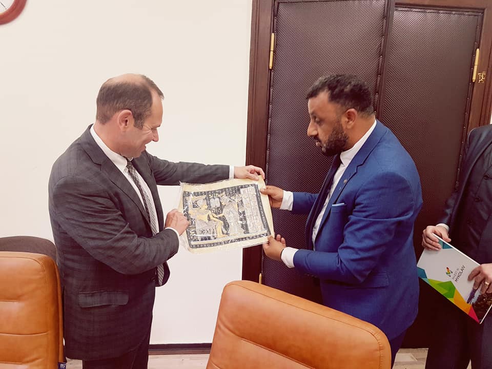 В Николаевском городском совете состоялась встреча Президента Международного конгресса защиты прав и свобод граждан «Щит» Салеха Мухаммеда Дагера с Первым заместителем городского головы Владимиром Криленко и депутатом Николаевского городского совета, председателем регионального отделения Украинского союза промышленников и предпринимателей Владиславом Ентиным.